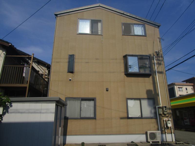 3階建ての立派な建物。I様からご相談があったとおり、日の当たる箇所では外壁の剥がれや反りが見られました。当たらない箇所は劣化が少なく、これからもそれほど傷みの進行は無いだろうと判断し、金属サイディングと塗装を組み合わせてコストを抑えるご提案をいたしました。屋根については持参したはしごでは届かなかったため、後日足場を組んだときに検討いただくというお約束をし工事を進めさせていただきました。外壁のリフォームは、大きくイメージを変えることができるので、思い切って白をご提案しました。今回ご提案した外壁サイディングは、KMEWのはる一番。ランダムな模様なので、光の当たる角度によって見え方が変わります。仕上がりは上々!どこから見ても目を引く、白く輝く美しい外観になりました。I様本当にありがとうございました!