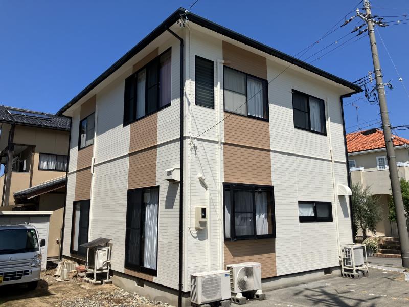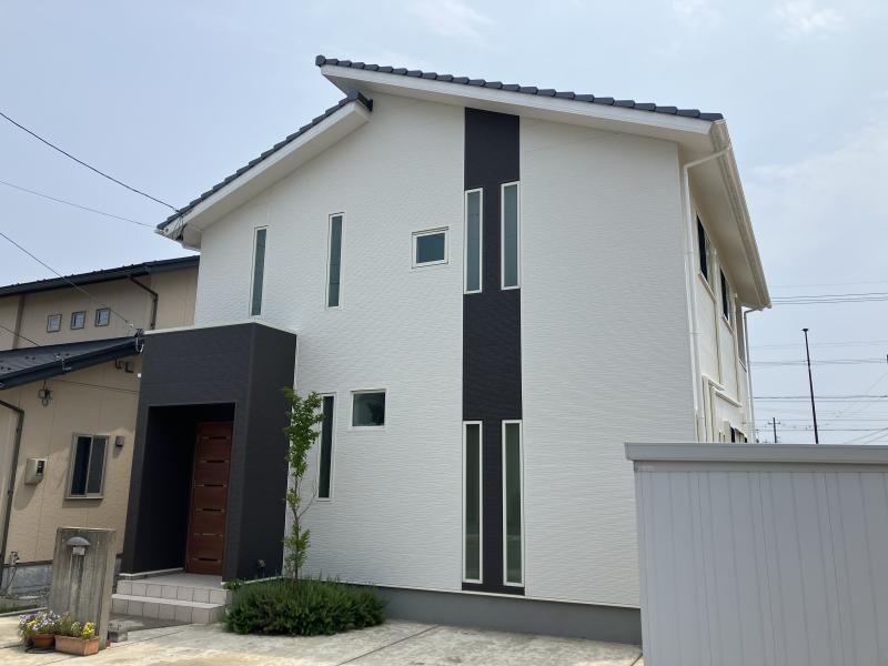 もともと既存の外壁色は1色でしたが、新たに縦にラインを入れる事で外観の雰囲気がガラっと変わりました。