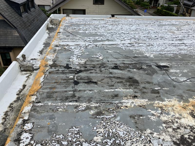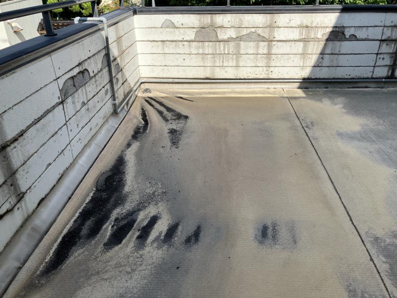陸屋根で直接の紫外線により防水材の表面が劣化。
