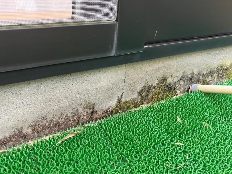 地盤の揺れによりベランダ床や立上り箇所にひび割れが発生。