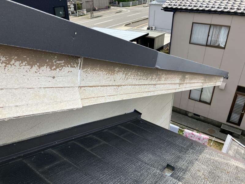 板金巻き施工は既存の破風板の上からガルバリウム鋼板などの金属板を巻き付けて覆う事で、耐久性が向上し、頻繁な塗装の塗り直しが不要となります。
